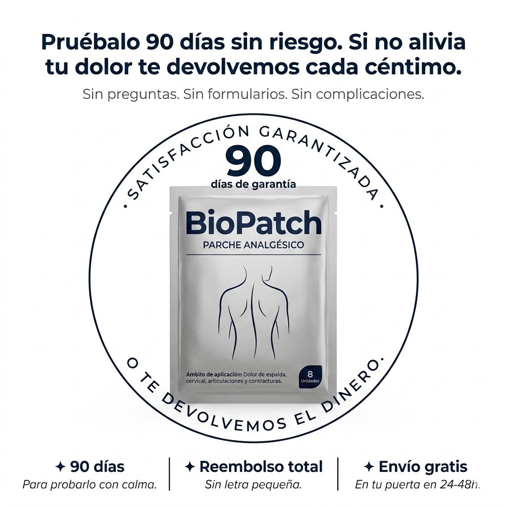 Olvídate de las pastillas que dañan tu estómago a largo plazo y de las cremas pegajosas que manchan tu ropa. BioPatch es el sistema de alivio localizado que actúa directamente en el foco del dolor muscular y articular.